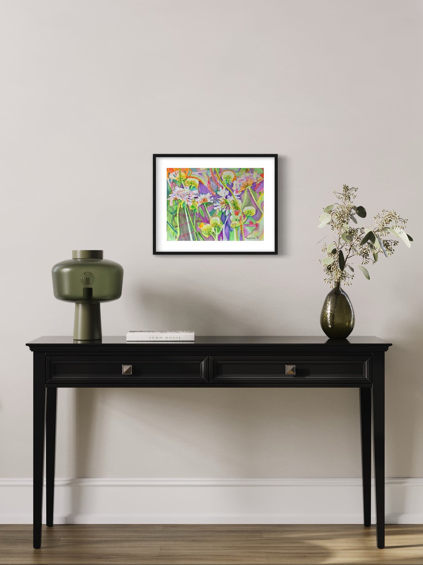 Watercolour of a tangle of pink flowers that grew in my garden. Sold Framed